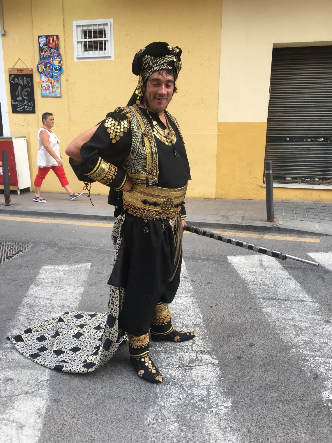 Acabo de llegar a Vilajoyosa, para trabajar en un guión con mi socio, que es oriundo de esta notable población, cuna del chocolate Valor, los Huesitos, conservas El Ancla y la célebre fiesta de Moros y Cristianos con la que me acabo de encontrar sin saber que era hoy. Me he paseado por la calle y me he empezado a topar con todo tipo de tribus árabes y bereberes, al principio no entendía nada y más tarde me han explicado que eran los preparativos de la fiesta. Aquí algunas fotos que he hecho de lo que me he ido encontrando. Puedo atestiguar que estos moros no son muy estrictos con la prohibición del alcohol.