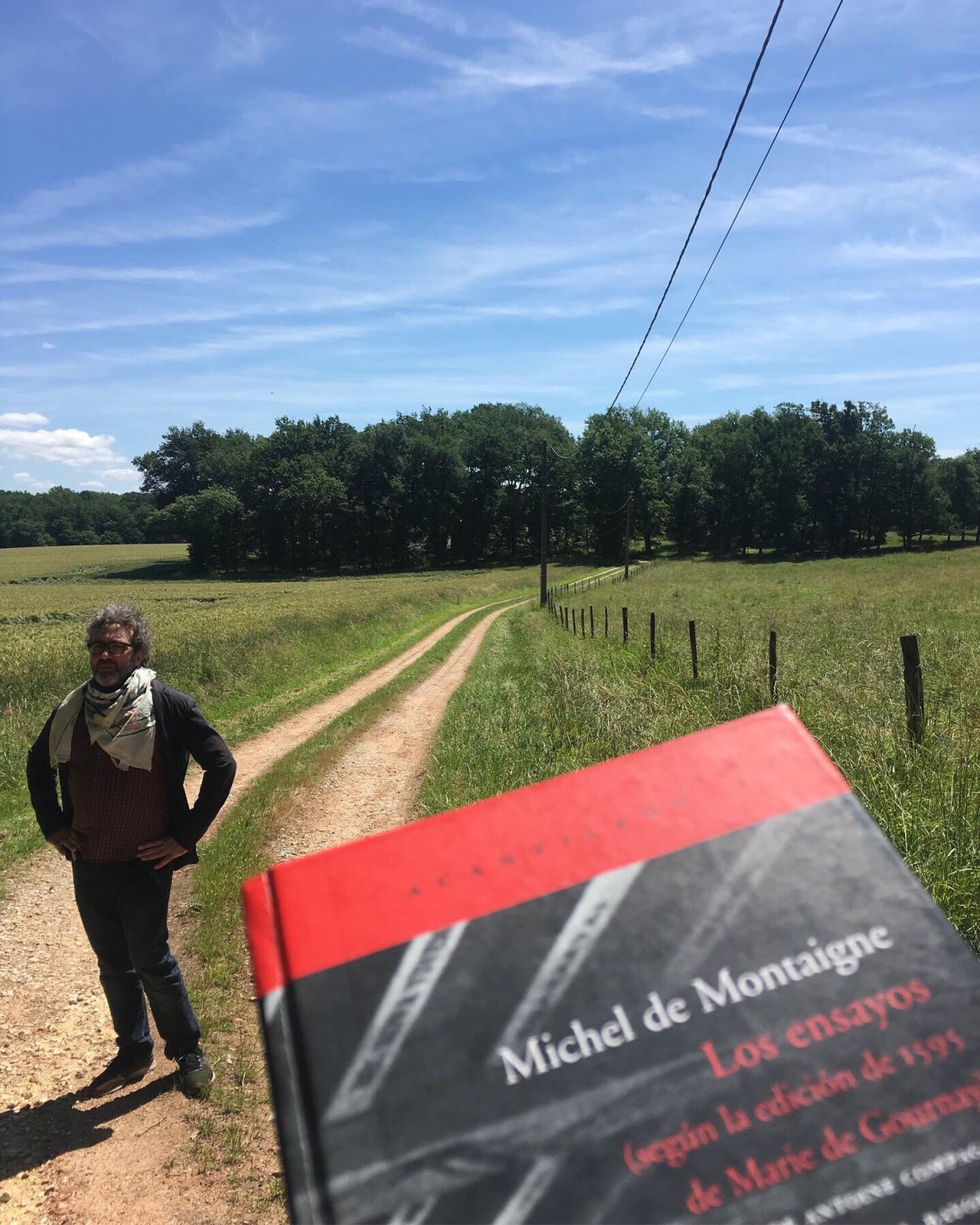 El domingo pasado volví con otras cinco parejas de amigos muy cercanos, fue la etapa final de un viaje hedonista por los viñedos de la zona con el que celebrábamos el 50 cumpleaños de uno de ellos, aquel en cuya casa descubrí, cuando yo tenía 16 años y el 23, un tomo de estos ensayos de Montaigne que jamás han abandonado desde entonces mi mesilla de noche. Esta segunda visita fue distinta que la primera con mis hijas: hacía menos calor, teníamos más tiempo y más ganas de perdernos por el paisaje, tras salir de la torre, nos quedamos por las cercanías del castillo. Encontramos un camino de tierra y empezamos a recorrerlo sin saber a dónde llevaba. El lector de Montaigne debe recorrer ese camino, que es tan importante como la visita de la torre, y mejor aún: no hay domingueros que nos dificulten fantasear, uno esta solo con su imaginación y con el fantasma del autor. Descubrí al cabo de pocos pasos que ese camino ya lo había recorrido muchas veces en mi imaginación, y según pasaba los prados de cereales, cruzaba el río y me adentraba en la espesura, la memoria me devolvía todo lo que había presenciado en aquel camino, cientos de años atrás. Ese era el camino que tomó con 38 años por primera vez para abandonar la urbe y encerrarse en la torre a escribir, el camino por donde los Hugonotes llegaban para matar al católico Montaigne y a su familia, el camino al final del cual Montaigne les recibía con la puerta de la muralla abierta y un banquete, porque decía que no había nada más hostil que una puerta cerrada, y ese era el camino por donde volvieron los Hugonotes ahítos de comer, de beber y de buen humor, tras perdonarle la vida al único católico que quedaba en la zona. Ese era el camino que tomó hacia lo desconocido para hacer su gran viaje a Alemania, Suiza e Italia, del que pensó que jamás retornaría vivo y fue el camino por el que regresó forzosamente de ese viaje porque le habían nombrado alcalde de Burdeos en su ausencia. Fue el camino por el que fue a enterrar a cinco de sus hijos y también fue el camino dónde se cayó de su caballo y quedó inconsciente, y sintió la muerte y dijo que aprendió a no temerla tras la caída, y era también el camino por donde años más tarde abandonó su casa y sus obligaciones para huir de la peste negra con su familia.
