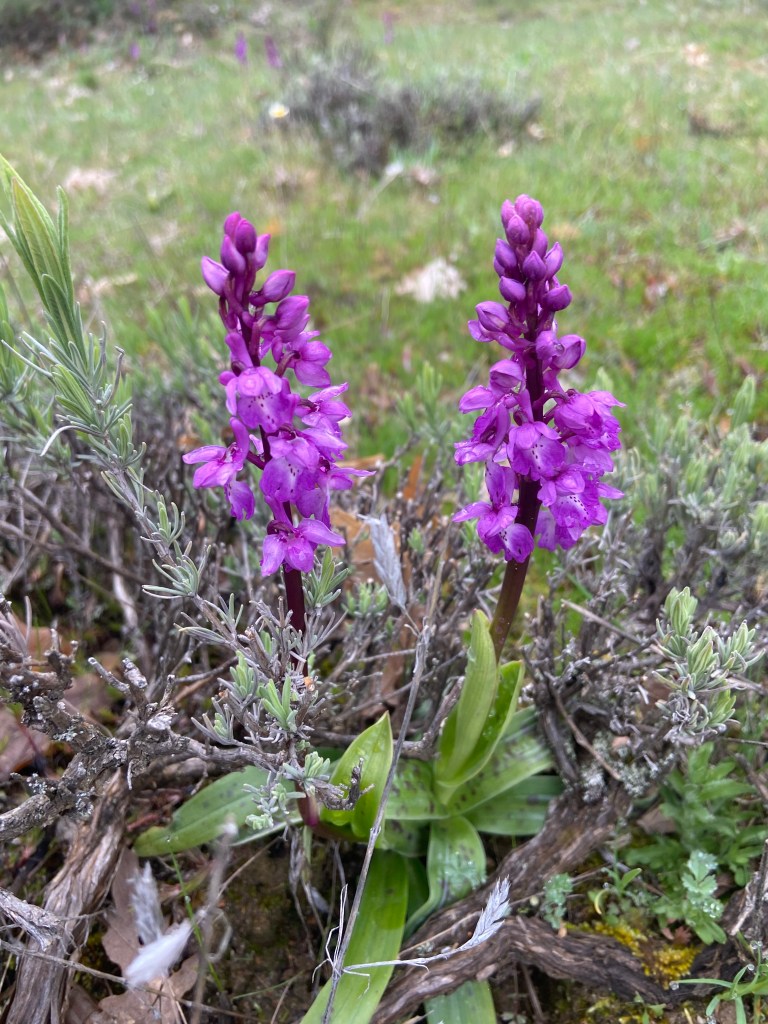 Orchis mascula, conocida como orquídea macho, clavellina o sangre de Cristo. La encontré subiendo en bici el puerto de Canencia por la cara norte, había varias cerca de la carretera, antes de llegar al pinar.