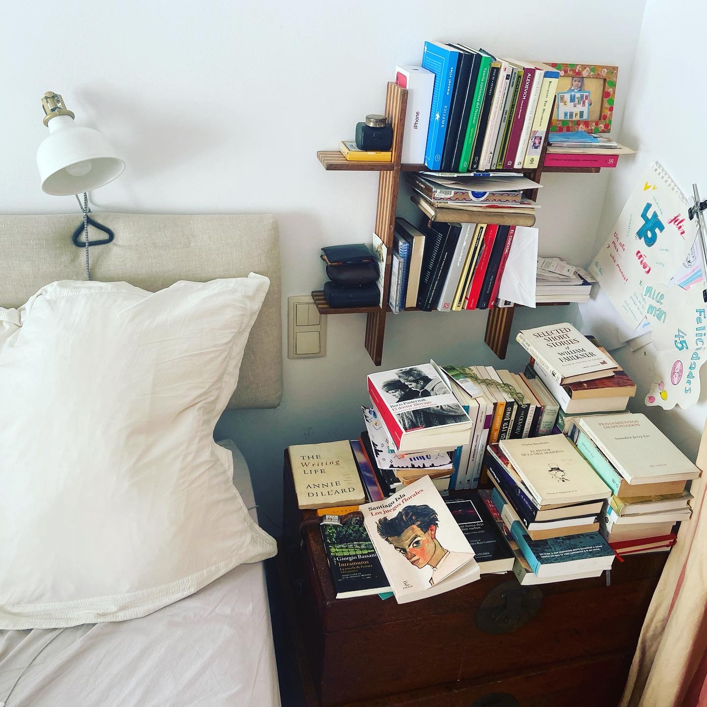 Confieso que no he leído ni un solo libro en verano. Tampoco he escrito y no he hecho ningún deporte. No sé en qué se me ha ido el tiempo. A la vuelta tengo la mesilla de noche en este estado, fruto de una ambición lectora muy poco realista, no puedo evitar recordar la viñeta de @danpiraro que os copio en la segunda foto. En cualquier caso, apilar libros por todas las esquinas de la casa es algo que me da confort, me gusta saber que tengo la oportunidad de escaparme a otro mundo en cualquier rincón de casa. Además me hacen parecer más culto de lo que en realidad soy, hay mucho de vanidad y de interiorismo decorativo en estos montoncitos. Hoy me publican un artículo sobre el fetichismo bibliófilo en The Objective y trato de convenceros de que os relajéis un poco con los libros digitales, que no vais a salvar la Amazonia por abandonar el papel
